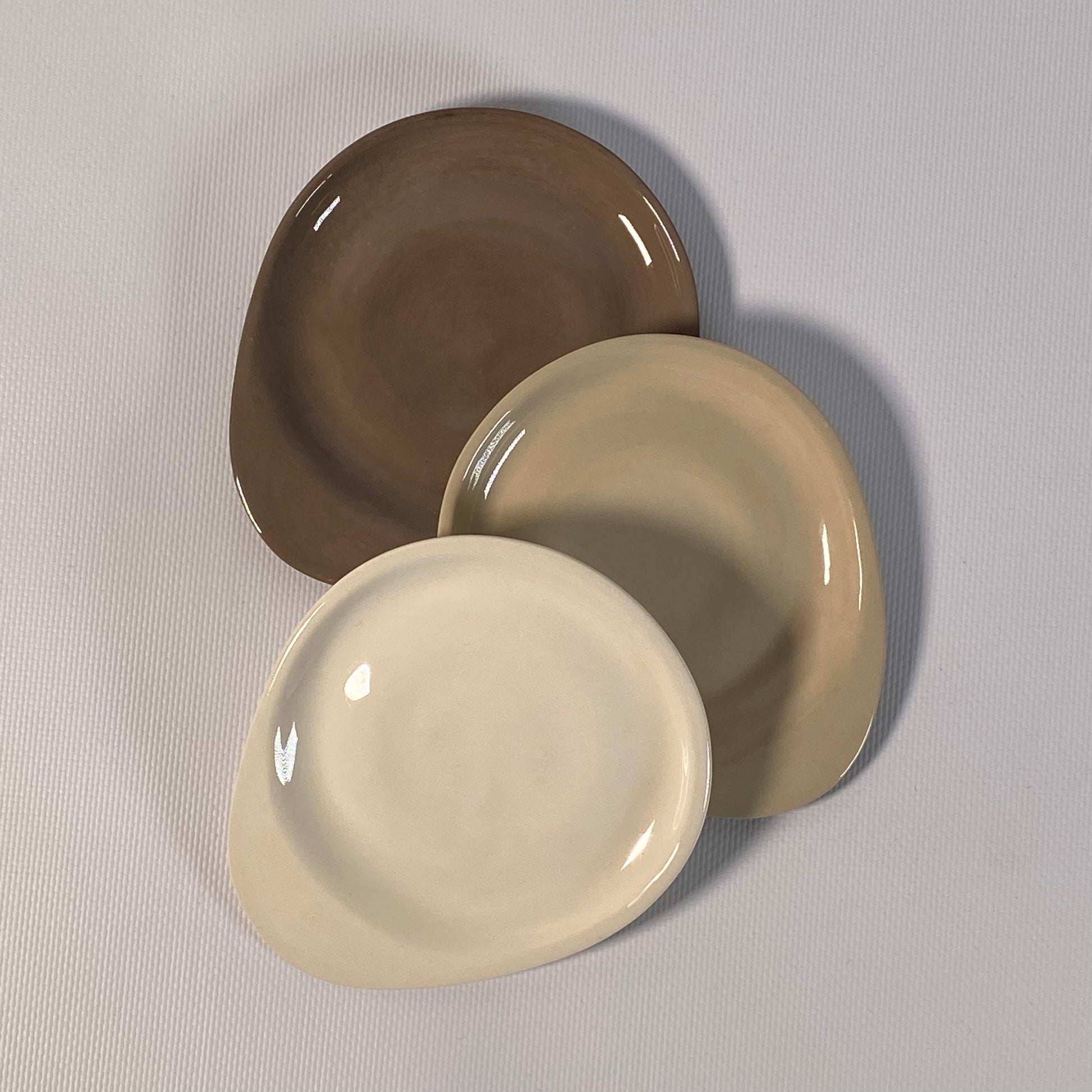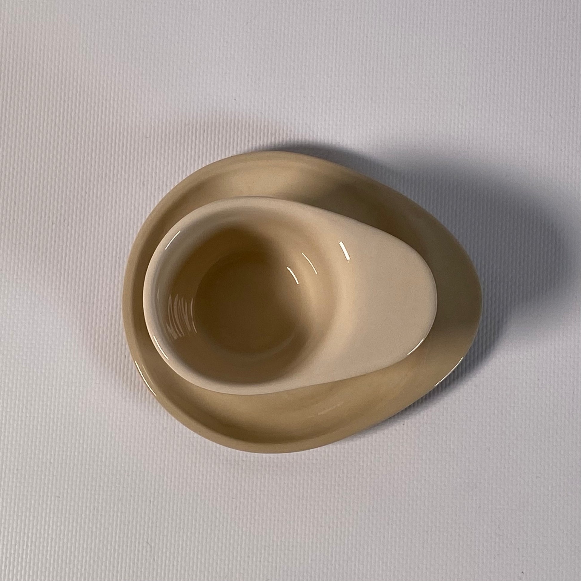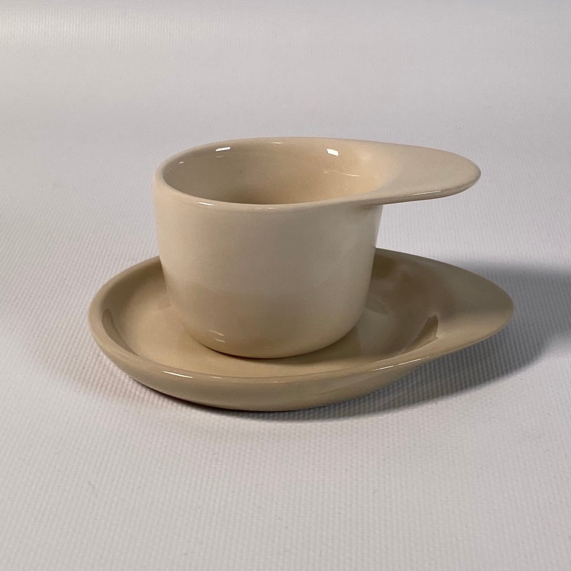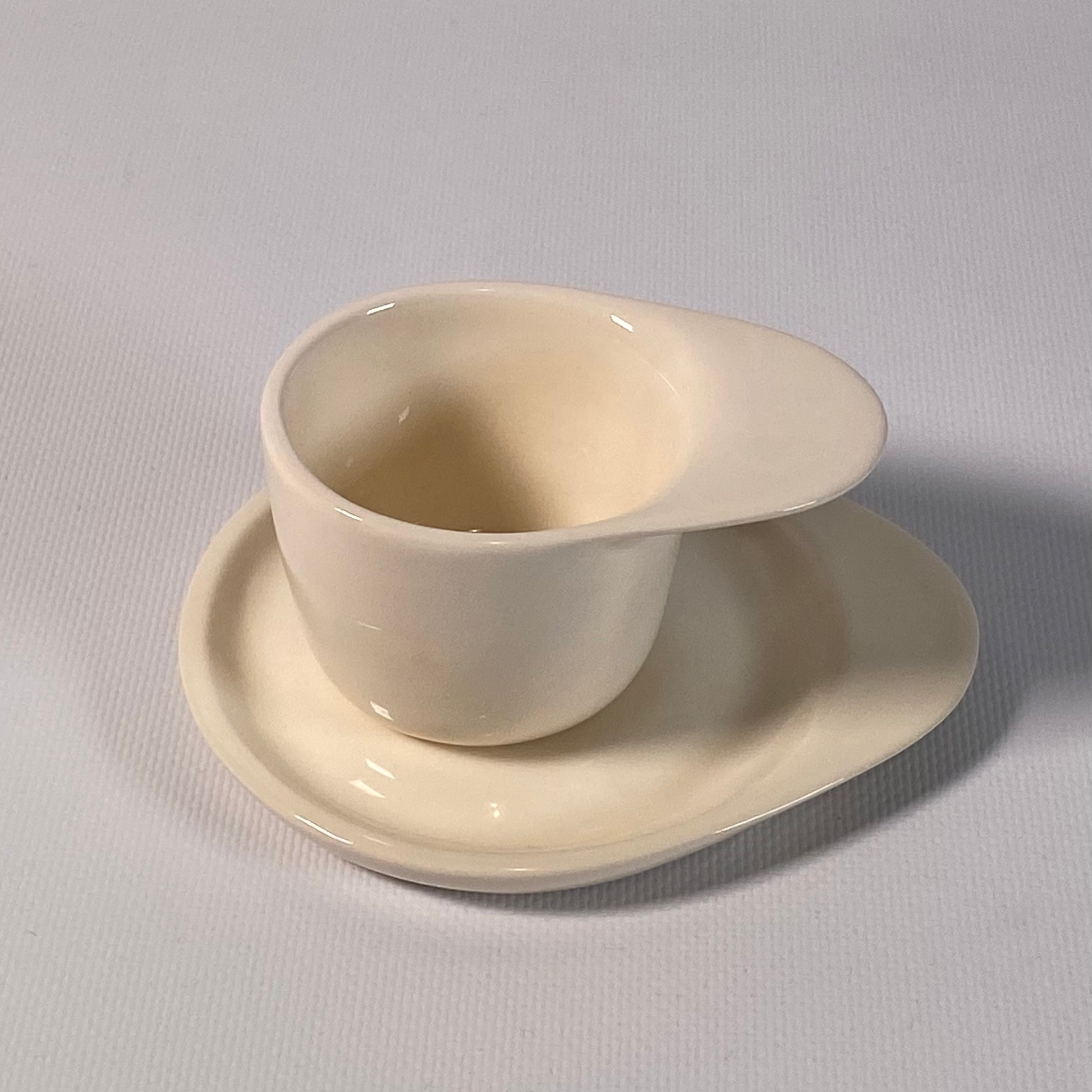 Tasse et assiette au design épuré, en grès, finition brillante, fabriquée 100 % à la main.