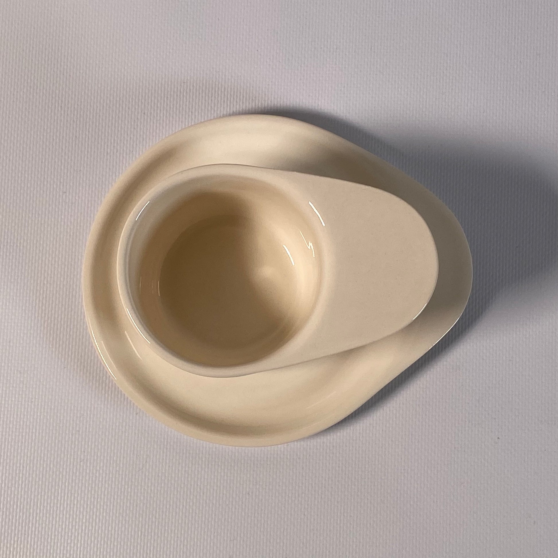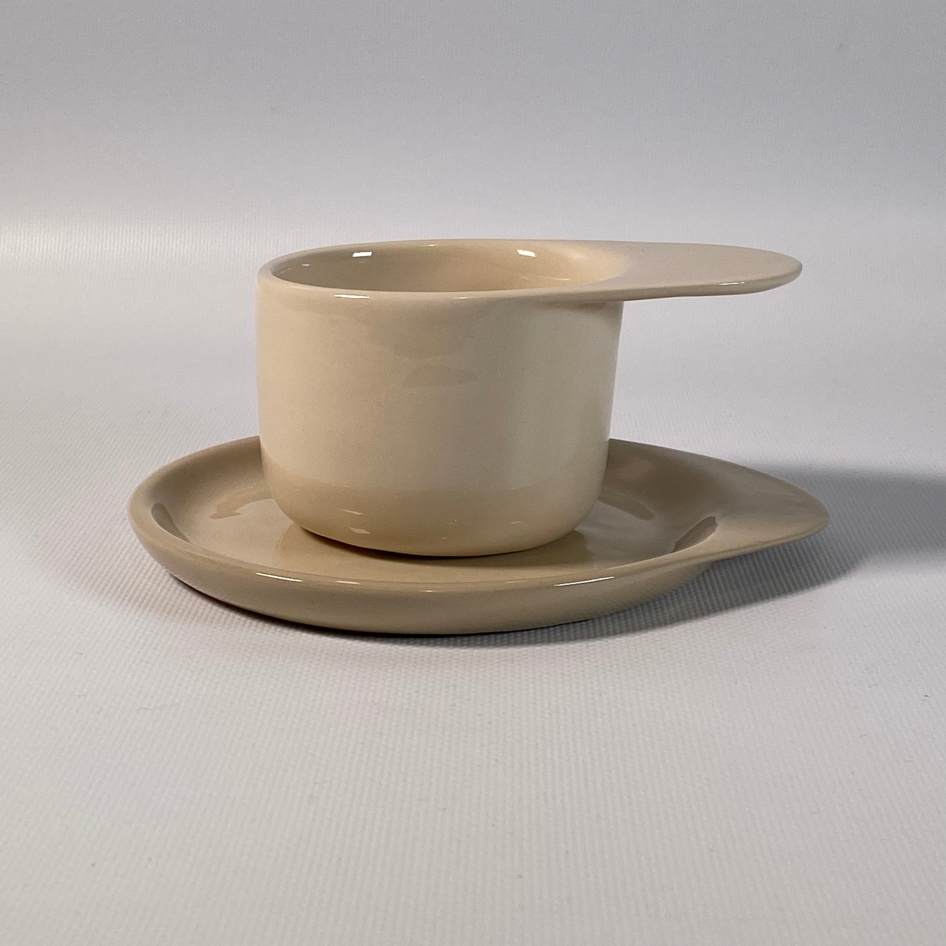 Tasse et sous tasse au design épuré, en grès avec une finition brillante,
